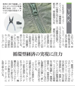 【メディア掲載】繊研新聞/循環型経済の実現に注力|YKK新着!!