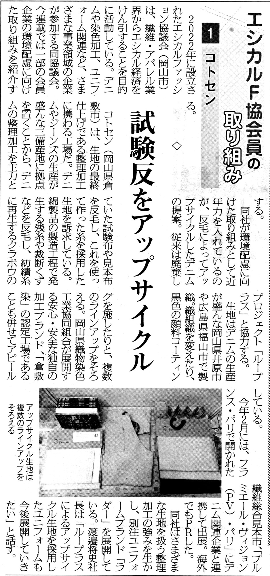 2025年10月10日の繊維ニュースにて、エシカルファッション協議会会員の株式会社コトセン(岡山県倉敷市)の取り組みが紹介されました。