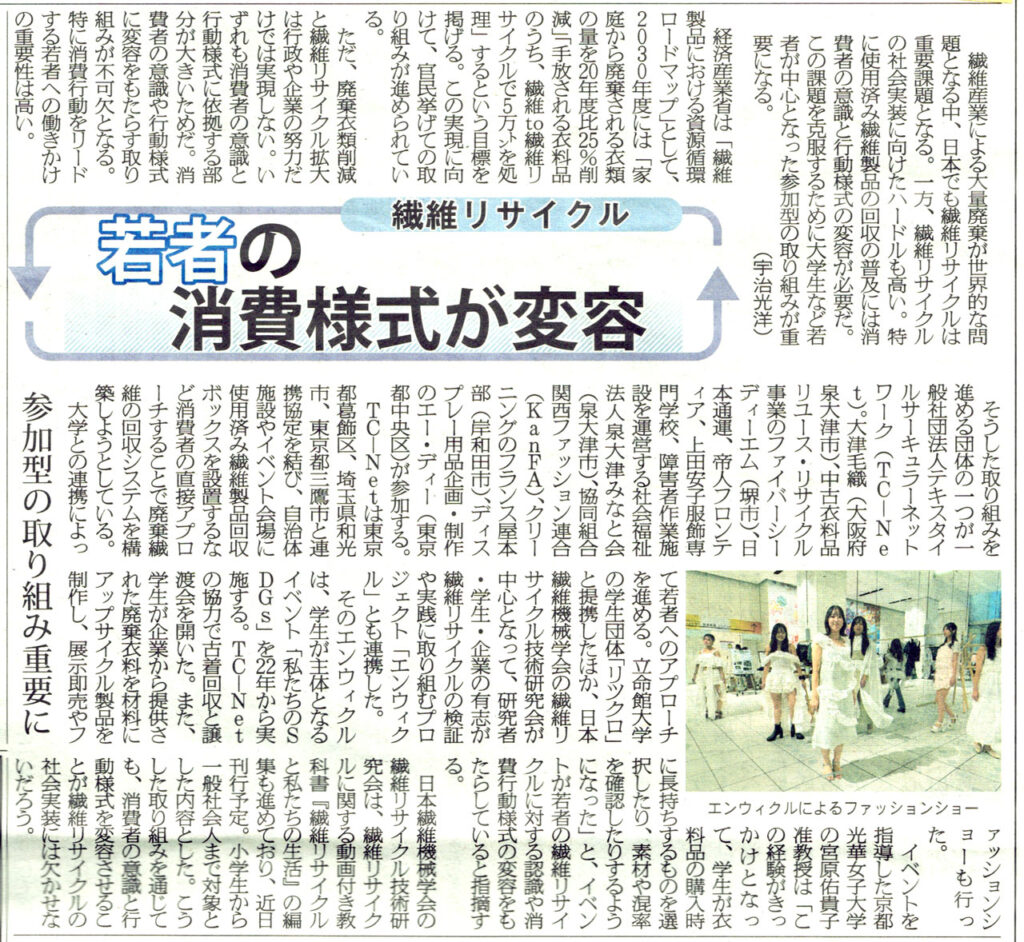 【メディア掲載】繊維ニュース|若者の消費様式が変容 ― 繊維リサイクルへの参加型の取り組み