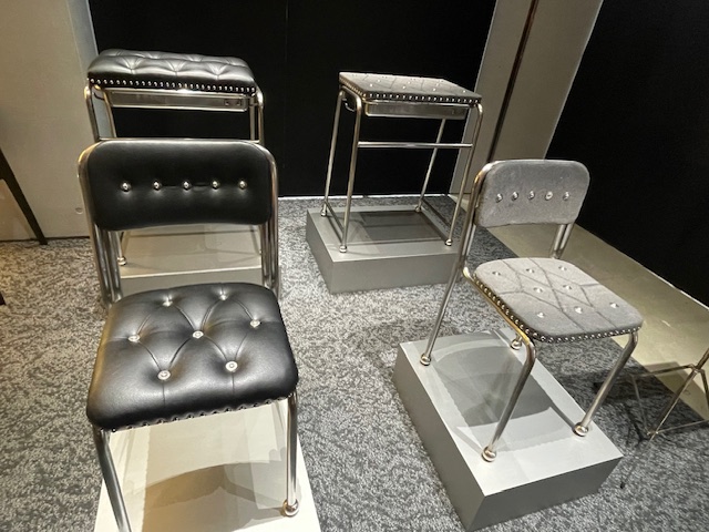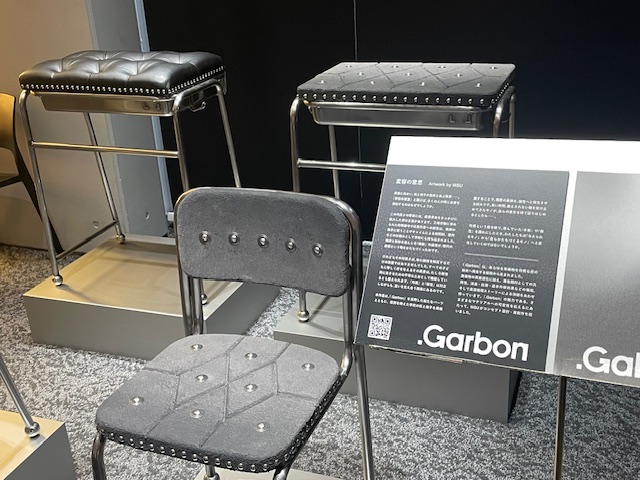学校の椅子や机を.Garbonのレザー等でリメイクした家具は、とても新鮮で前衛的です。左官材料(塗り壁など)としての.Garbonにも、大変可能性を感じました。