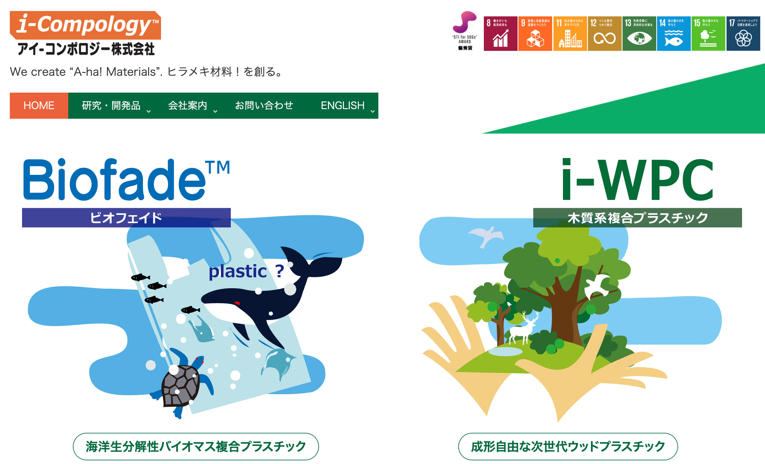 「A-ha!材料」を使っていただく皆様ご自身が、「ヒラメキ!」を直感し発想してもらえるあっと驚く材料を一年以内にも創りたいと、5年前思いきって書きましたが、海中でも生分解できるプラスチック材料[Biofade]ができました。ウソではありません、射出・ブロー・真空成形もできました、特許も取れました。