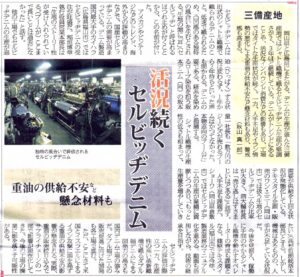 3月18日付の 繊維ニュース に、三備産地のジーンズ加工場についての記事が掲載されました。