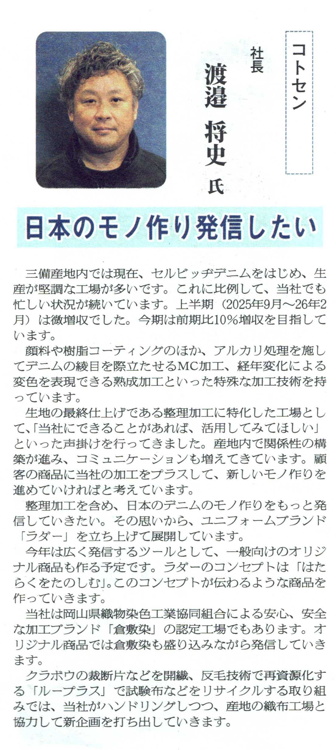 【メディア掲載】繊維ニュース/コトセン|日本のモノ作り発信したい