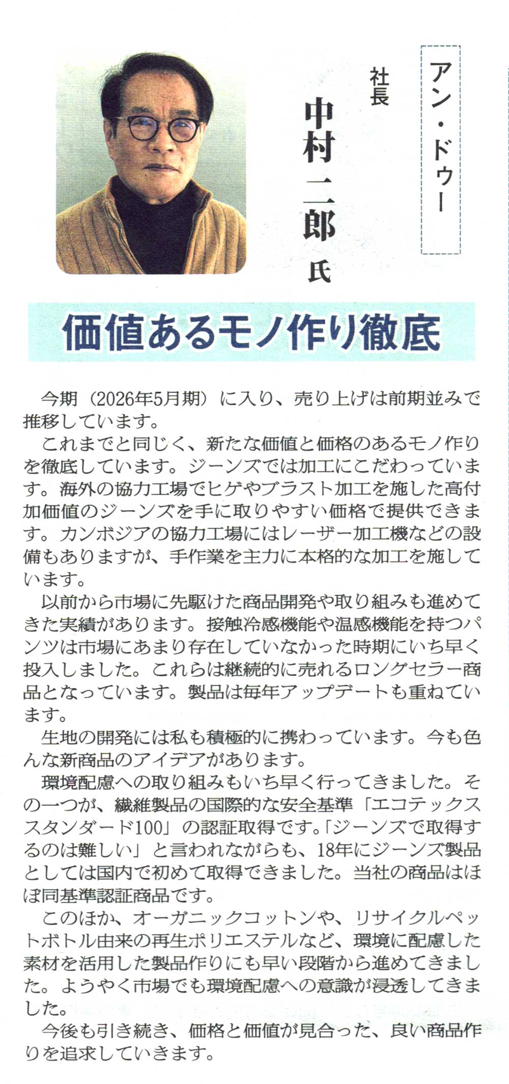 【メディア掲載】繊維ニュース/アン・ドゥー|価値あるモノ作り徹底