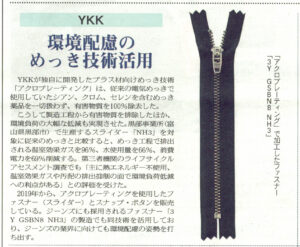 【メディア掲載】繊維ニュース/YKK株式会社|環境配慮のめっき技術を活用新着!!